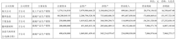 金晶科技主要控股参股公司情况也显示,作为贡献最大营业收入的海天公司,上半年的净利润只有1635万元。四家玻璃生产企业中,滕州金晶和宁夏金晶都处于亏损之中,其中营业收入近5个亿的滕州金晶亏损5519.77万元,营收1.14亿元的宁夏金晶亏损2725.20万元。滕州新材料公司与金晶马来西亚公司虽然均实现了盈利,但是净利润也只有600万元和797万元。